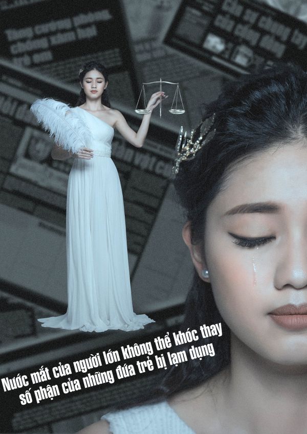 Sau quá trình đồng hành cùng Dự án, Á hậu Việt Nam 2016 thực hiện bộ ảnh ý nghĩa kêu gọi sự quan tâm của xã hội đến vấn đề chống xâm hại trẻ em. Trong hình, người đẹp gốc Hà thành hoá thân thành nữ thần công lý, gióng lên hồi chuông cảnh tỉnh trước những con số đáng báo động về thực trạng trẻ em bị xâm hại.