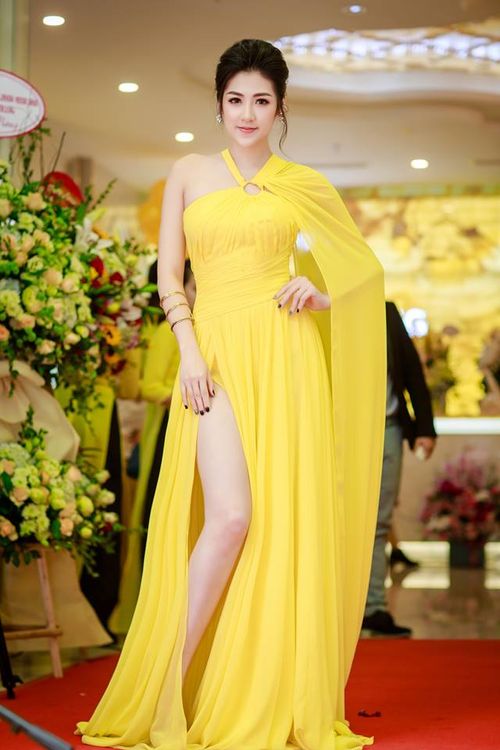 Màu sắc vàng chanh tươi trẻ cùng với chất liệu voan mỏng giúp cô trở nên nhẹ nhàng, nữ tính và mềm mại.