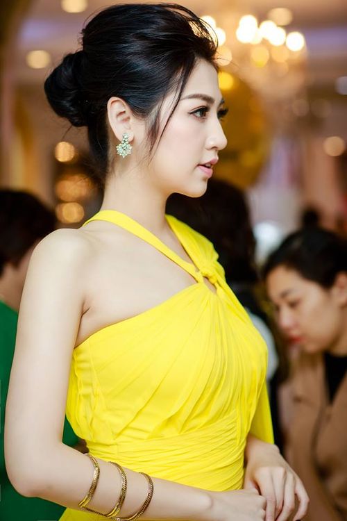 Cô khéo léo lựa chọn lối trang điểm nhẹ nhàng với đôi môi hồng nude nhằm tôn lên sắc vàng tinh tế của bộ trang phục. Đặc biệt người đẹp đã biết tương tác với váy áo để cho ra những bức hình đẹp mắt.