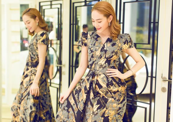 Ở bất kỳ tone màu, họa tiết hay cách cắt cúp nào, Minh Hằng đều diễn tả trọn vẹn sắc thái riêng của mẫu thiết kế đúng với thông điệp từ Phương My.