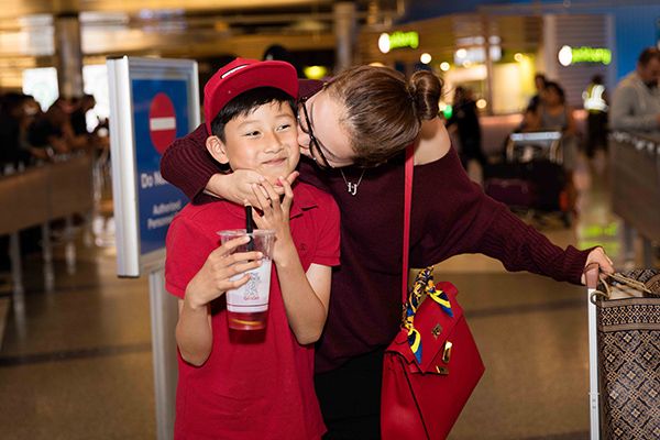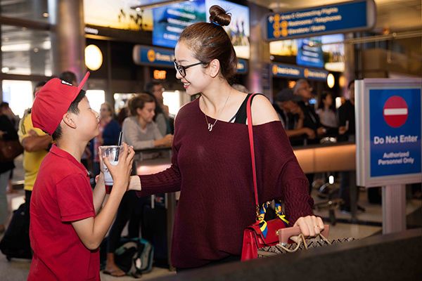 Được biết, Bảo Nam được nghỉ học vào dịp cuối tuần nên quyết định cùng dì ra sân bay đón mẹ. Hai mẹ con người đẹp không ngừng trò chuyện, vui đùa bên nhau. Tuy nhiên, khi được mẹ ôm hôn giữa sân bay thì Bảo Nam lại tỏ ra ngượng ngùng, xấu hổ. Năm nay cậu nhóc lên 9 tuổi, nhưng đã lớn phổng phao và càng ngày càng đẹp trai, cũng như tỏ ra rất người lớn.