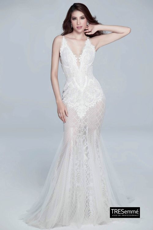 Concept của bộ ảnh nói về những cô gái thanh lịch, cao sang, quý phái với những bộ váy dạ hội sang trọng, những mái tóc vào nếp. Phạm Hương và 2 thí sinh biến đổi qua từng tấm hình.