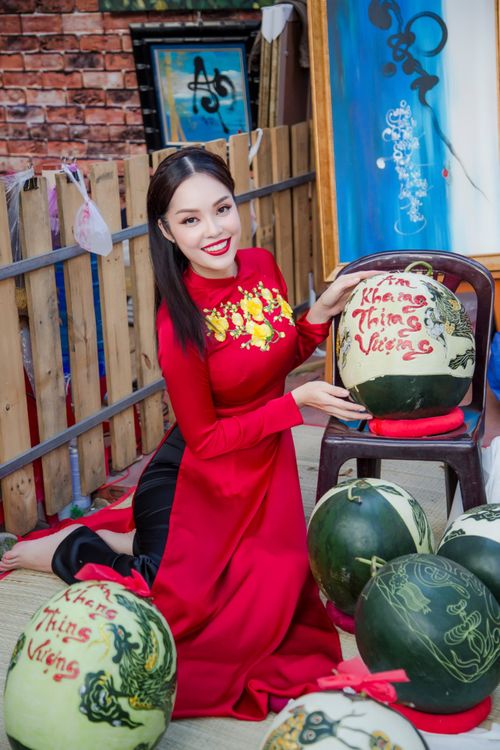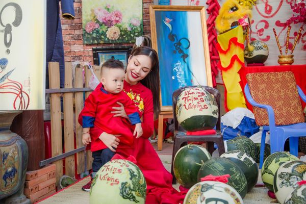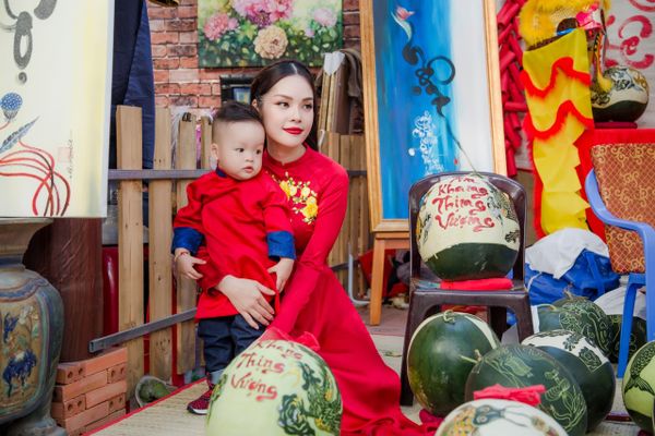 “Để cho con hiểu hơn, và yêu những phong tục đẹp của người Việt mình mỗi khi Xuân về, Lynh đã quyết định đặt bộ áo dài để làm bộ ảnh kỉ niệm không chỉ cho con, mà còn cho cả gia đình Lynh nữa” - Dương Cẩm Lynh chia sẻ.