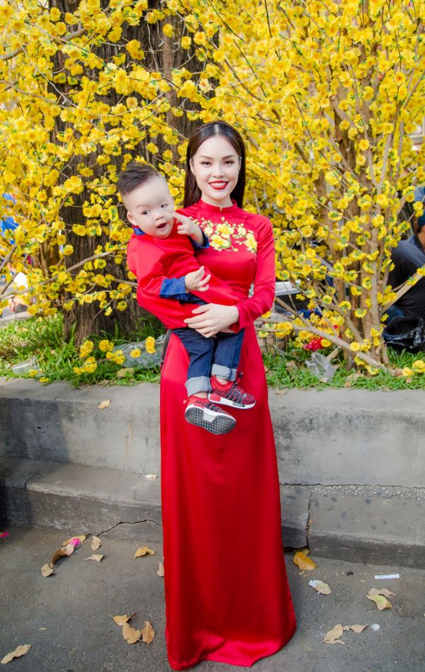 Để có một cái Tết 2018 thật nhiều ý nghĩa với con, Dương Cẩm Lynh tranh thủ những ngày trước Tết cùng con trai đi chụp ảnh kỷ niệm. Hai mẹ con diện áo dài, cùng lưu giữ những khoảnh khắc đáng nhớ bên nhau. Sở hữu thân hình cân đối và khuôn mặt sáng, Dương Cẩm Lynh thích những tông màu tươi sáng và chọn cho bộ ảnh lần này.