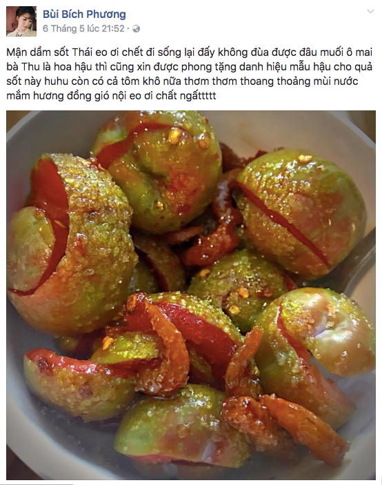 Bích Phương cực kỳ nghiện mận Hà Nội, những fan thường xuyên lui tới Facebook của cô chắc hẳn sẽ thấy được rất nhiều hình ảnh nữ ca sĩ chia sẻ về mận Hà Nội.