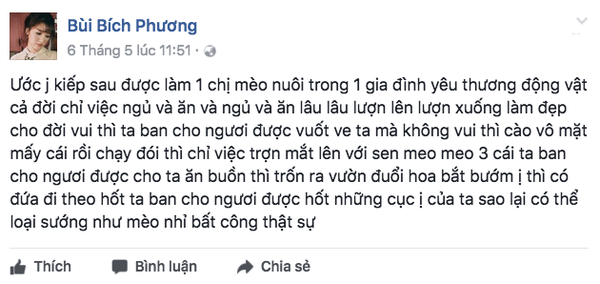 Ngoài ra, một số dòng trạng thái cũng như hình ảnh hài hước, nhắng nhít từ trang Facebook cá nhân của cô nàng cũng cho thấy Bích Phương trên sân khấu và ngoài đời thực khác nhau đến thế nào.