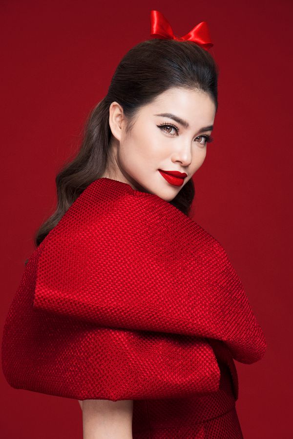 Với chiếc nơ cài tóc cùng đôi môi đỏ, Phạm Hương như hình tượng hoàn hảo cho hình ành nàng Bạch Tuyết ngoài đời thật.