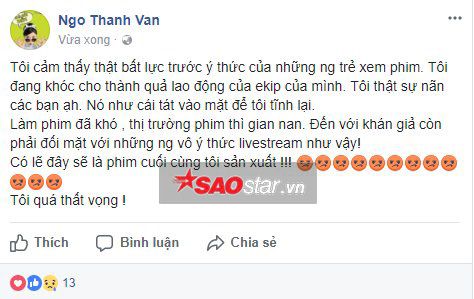 Nhà sản xuất Ngô Thanh Vân thể hiện sự đau xót và phẫn nộ.