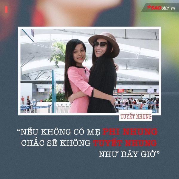 Với bản thân em, mẹ hay giúp em tập những câu hát mà em luyến láy chưa hay, hát đi hát lại nhiều lần. Thậm chí, trước khi lên sân khấu cũng phải hát lại cho mẹ nghe. Mẹ hỗ trợ em rất nhiều, nếu không có mẹ chắc sẽ không có Tuyết Nhung như mọi người nhìn thấy bây giờ.