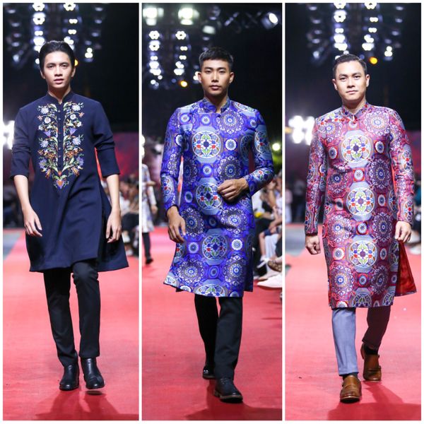 Áo dài cách tân của nam cũng mang đạm nét truyền thống.