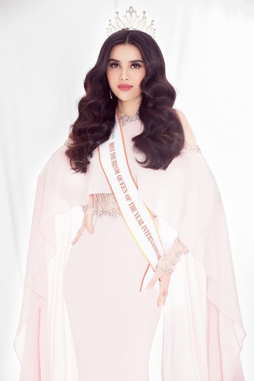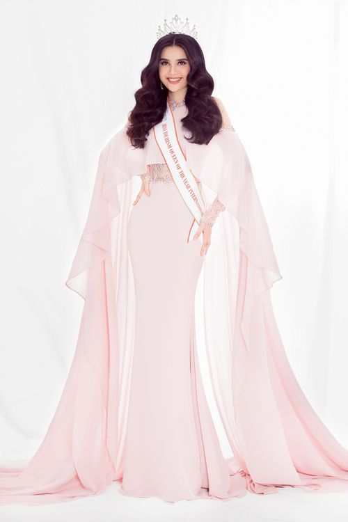 Trước ngày lên đường sang Trung Quốc, Diệu Thuỳ thực hiện bộ ảnh giới thiệu bản thân. Lần này, cô diện thiết kế dạ hội tông hồng pastel ngọt ngào. Thiết kế ôm dáng tôn đường cong cơ thể vừa phải, nhưng vẫn đảm bảo độ bay bổng nhờ tà áo hai bên tay. Trang phục hợp vẻ nữ tính, thanh lịch của á hậu.