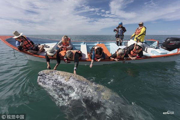 Một chú cá voi xám lập tức ngoi lên mặt nước để chào đón đoàn khách du lịch ở Baja California, Mexico, tháng 3/2017.