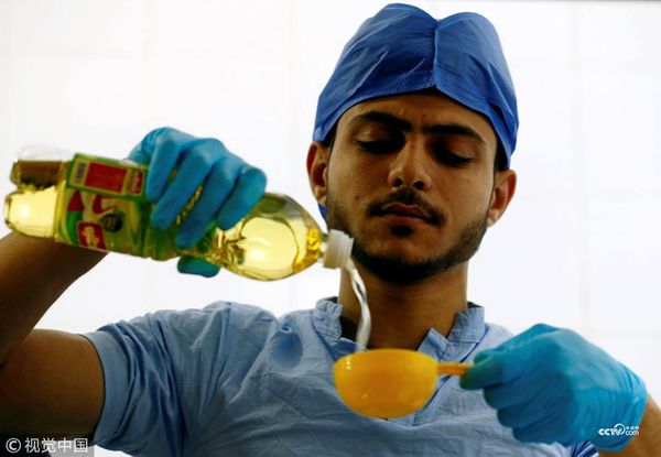 Có gì đó sai sai trong bức ảnh này, khi mà một người đàn ông mặc áo blouse lại rất đăm chiêu trong việc đong đếm dầu ăn. Trên thực tế, anh ta là một nhân viên nhà hàng ăn ở Damanhour, Ai Cập.