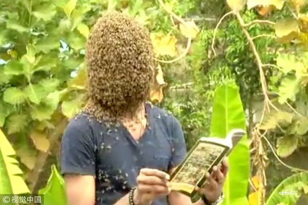 Đây là cách mà một thanh niên thể hiện tình cảm yêu mến đối với thiên nhiên. Anh thường xuyên cho phép khoảng 60.000 con ong đậu lên mặt vì cho rằng chúng có thể “an ủi” mình.