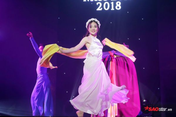 Không chỉ thể hiện vẻ đẹp năng động, tự tin thông qua các điệu nhảy hiện đại nóng bỏng, nữ sinh Học viện Ngoại giao còn thể hiện sự trẻ trung, năng động của mình khi đưa các yếu tố hiện đại kết hợp truyền thống vào phần thi tài năng của mình.