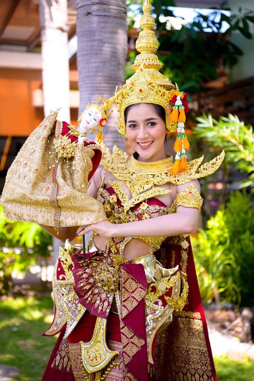 Người đẹp Thái Lan đem đến cuộc thi bộ trang phục lộng lẫy với các chi tiết được lấy ý tưởng từ chùa chiền cùng các vũ điệu đặc trưng của đất nước.