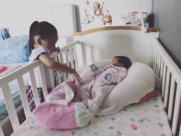 Từ khi lên chức chị, Tuệ Lâm tỏ ra rất người lớn và thường xuyên chăm sóc em.