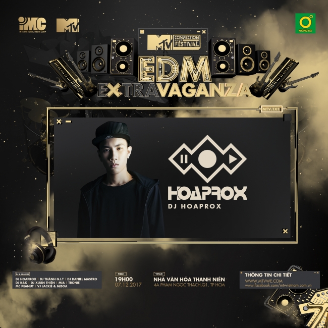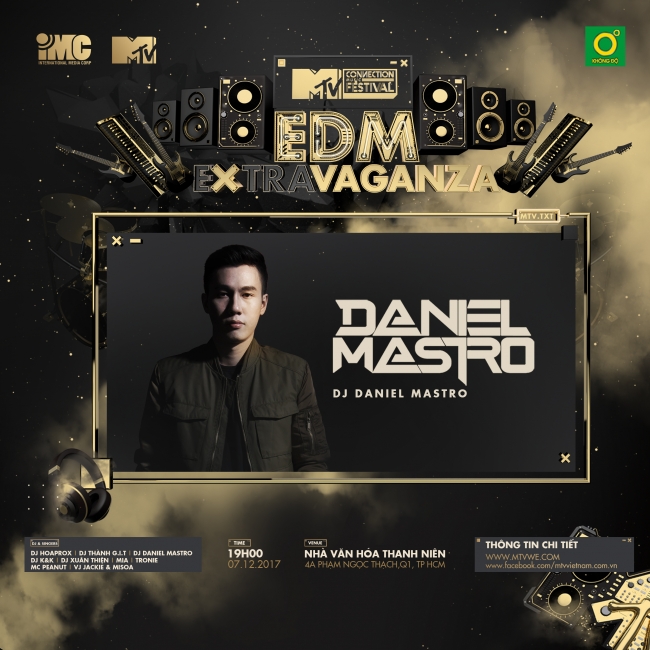 MTV Connection tháng 12/2017, EDM Extravaganza sẽ là một bữa tiệc âm nhạc nhiều màu sắc và tưng bừng vào dịp cuối năm. Là sân chơi mà các tín đồ EDM không thể bỏ qua. Với dàn DJ Lineup cực chất, Hoaprox-Quán quân The Remix 2017, Thành Gi.T-Phù thuỷ EDM phối hợp cùng Daniel Mastro, cùng với sự xuất hiện chất lừ của 2 khách mời Tronie – MiA, EDM Extravaganza chắn chắn sẽ là một đêm nhạc hoành tráng để khép lại 2017.