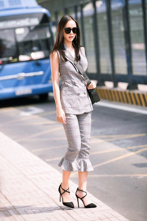 Cô kết hợp áo phông với quần sọc caro khoe khéo vòng eo nhỏ nhắn của mình. Năm vừa qua được xem là một năm khá thành công của người đẹp khi cô liên tiếp góp mặt trong các dự án phim điện ảnh, đặc biệt cô vinh dự được sải bước trên thảm đỏ danh giá nhất hành tinh Cannes.