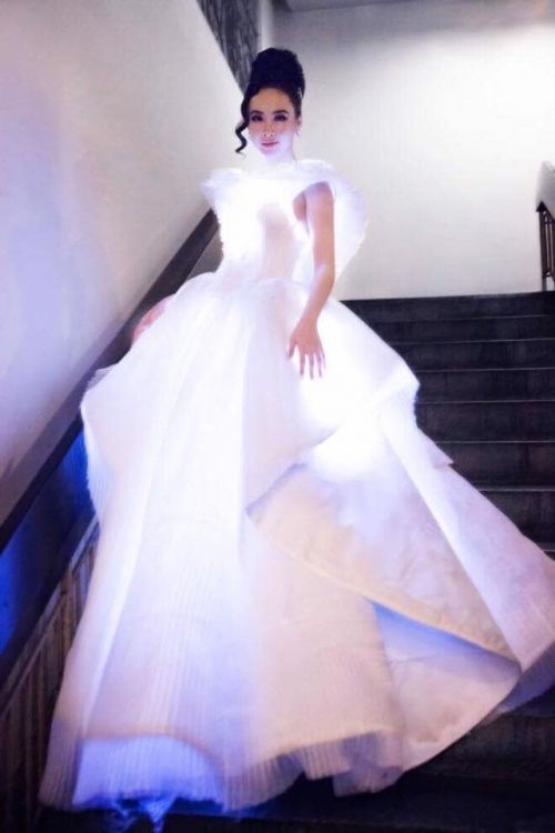 Xuất hiện trong đêm trao giải Mama 2017 vào ngày 25/11 vừa qua, Angela Phương Trinh trở thành tâm điểm khi diện cả “cây váy” phát sáng lên thảm đỏ. Được biết, bộ đầm xòe hở vai được thiết kế bởi NTK Nguyễn Tiến Truyển đã thành công nổi bật trong sự kiện với sự góp mặt của những nhân vật nổi tiếng như Wanna One, Samule, Thu Minh, Tóc Tiên,…
