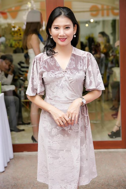 Bên cạnh đó, đông đảo bạn bè, ngôi sao cũng đến chúc mừng Diệp Bảo Ngọc. Đơn cử như Mỹ Uyên, cô diện một chiếc váy gấm gam màu xám sang trọng.