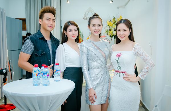 Diệp Bảo Ngọc chụp ảnh cùng vợ chồng Thanh Duy, Kha Ly và Dương Cẩm Lynh.