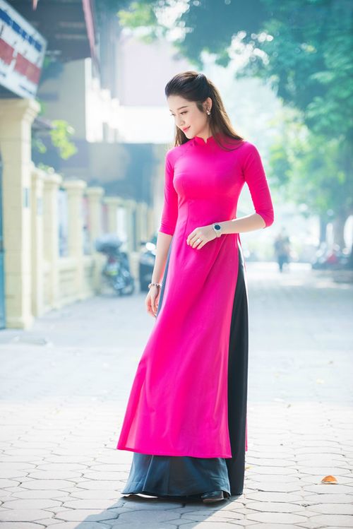 Với áo dài trơn đơn sắc như thế này, các nàng không phải quá lo lắng với việc lựa chọn phụ kiện đi kèm. Bởi nếu chọn những phụ kiện cùng tông màu hay các phụ kiện với màu sắc nổi bật cũng đều tạo nên phong cách thời trang riêng cho bạn mà không hề tạo cảm giác diêm dúa hay sến sẩm.