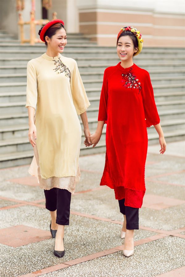 Sắc đỏ sẫm từ chất liệu lụa gợi một chút mộng mơ, lãng mạn. Để biến tấu đa dạng, chỉ cần lựa chọn tông màu của chiếc quần hoặc váy mặc cùng áo dài là được. Riêng áo dài đỏ, quần có màu trắng hoặc đen sẽ là sự lựa chọn tuyệt vời nhất.