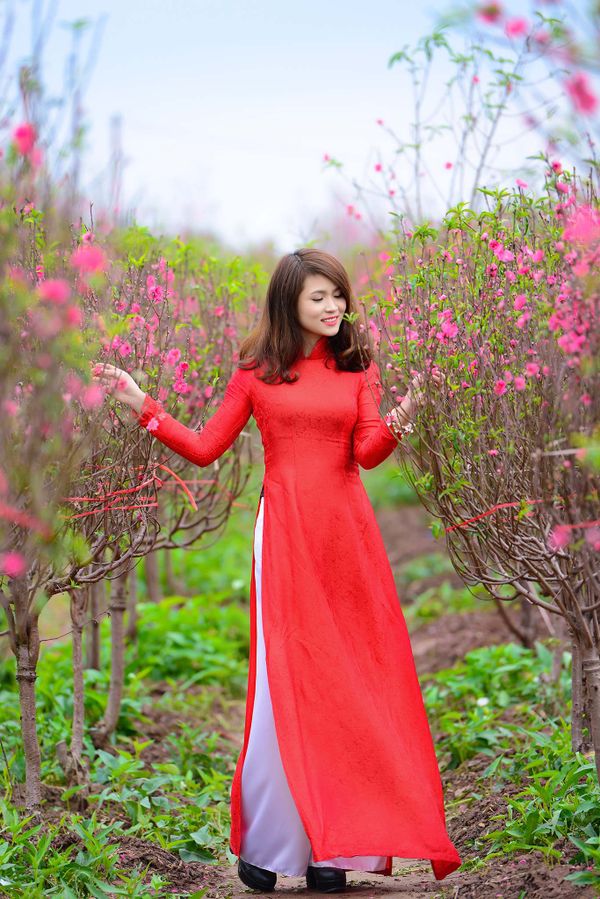 Sắc đỏ là gam màu không thể thiếu trong những ngày xuân, một chiếc áo dài đỏ tươi như thế này chắc chắn sẽ là một sự lựa chọn nhận được nhiều lời khen ngợi trong dịp Tết cổ truyền của dân tộc.