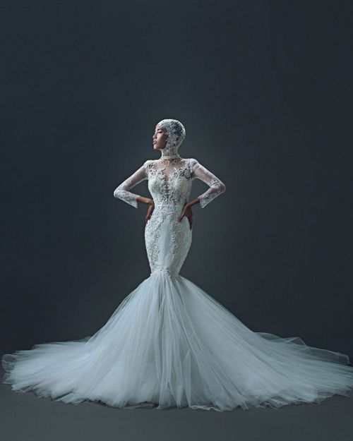Trong một thiết kế váy cưới đuôi cá xuyên thấu khác, lại xuất hiện một Ngọc Trinh vô cùng sexy, nóng bỏng hút mắt.