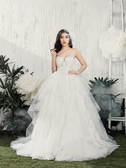 Á hậu Tú Anh là một trong những người đẹp thường xuyên diện các mẫu thiết kế váy cưới.
