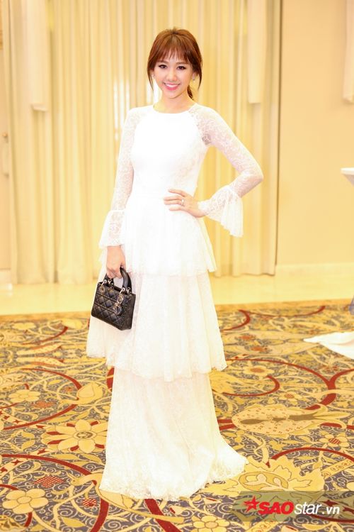 Diện chiếc đầm trắng ren xếp tầng nhã nhặn, bà xã Trấn Thành khoe vẻ đẹp mặn mà đầy quyến rũ.