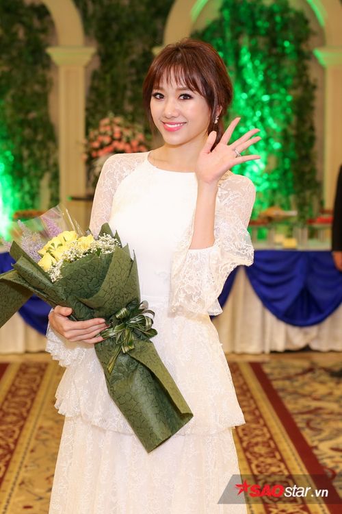 Hari Won khiến các khách mời ngỡ ngàng trước thân hình thon gọn. Sau khi giảm 9 kg trong vòng 4 tháng, giọng ca Anh cứ đi đi là một trong nghệ sĩ đắt show sự kiện và quảng cáo nhất trong thời gian qua.
