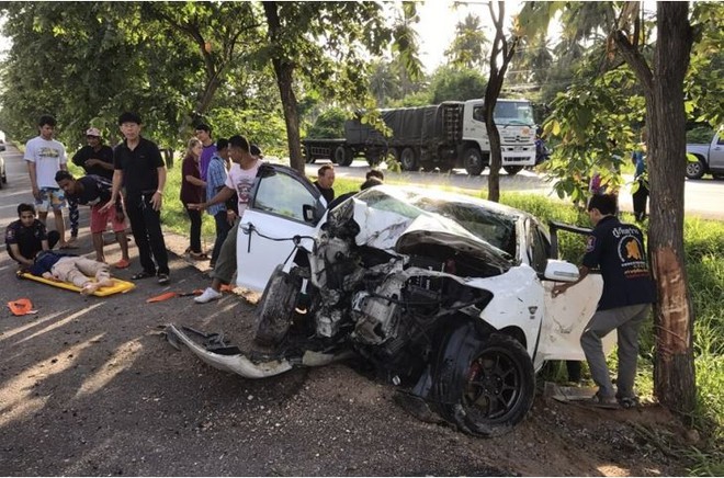 Phần đầu xe của Hoa hậu Rattana Ramchatu tan nát sau tai nạn kinh hoàng