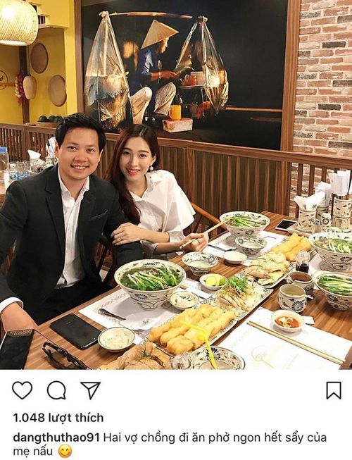 Kèm theo bức ảnh ấm áp này, “thần tiên tỷ tỷ” còn có dòng chia sẻ: “Hai vợ chồng đi ăn phở ngon hết sẩy của mẹ nấu”. Hình ảnh Thu Thảo diện đồ giản dị, trang điểm nhẹ nhàng, hạnh phúc ngồi bên ông xã khiến người hâm mộ không khỏi ghen tị vì mối tình viên mãn này.