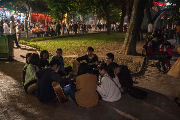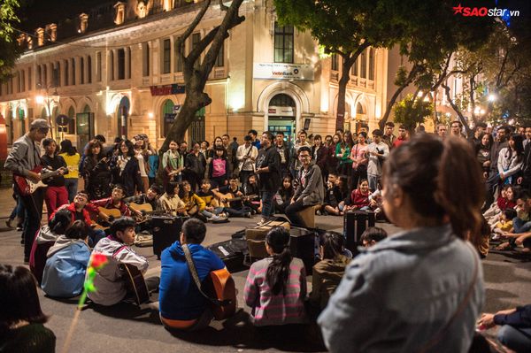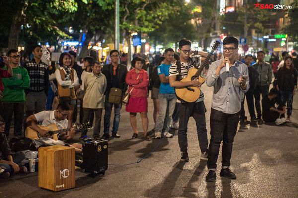 Cứ đến khoảng 20h30 tối thứ 6, phố đi bộ quanh hồ Gươm lại chuẩn bị đón một bữa tiệc âm nhạc đường phố kéo dài suốt 2 ngày, 3 đêm. Trước giờ biểu diễn khoảng 30 phút, khu vực ngã tư có điểm nhạc đường phố đã không còn một chỗ trống. Để xem nhạc, nhiều em nhỏ phải chen lên vòng đầu, ngồi ngay dưới lòng đường chờ đợi.