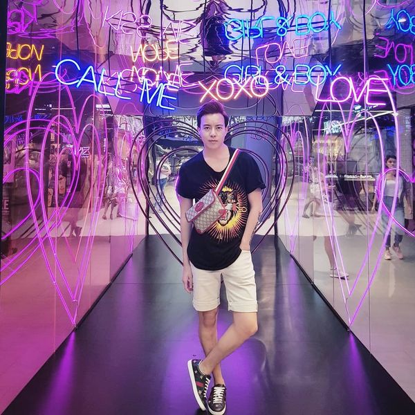 Trang phục của stylist Mạch Huy trông có vẻ đơn giản thế thôi, nhưng nếu xét ra từng items như áo phông, giày và túi đeo chéo của Gucci, sẽ thấy giá trị set đồ lên đến cả trăm triệu.