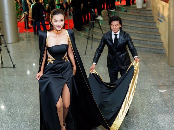 Những ngày đầu tháng 11, Kim Tuyến xuất hiện với bộ đồ vải bóng pha ánh kim tại sự kiện ở TP.HCM. Chiếc váy này không quá tệ nhưng nó lại quá lòa xòa khiến người đẹp vất vả khi di chuyển.