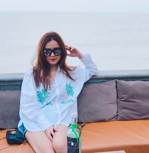 Tóc dài với phần mái được tỉa mỏng, chải qua một bên, nhuộm nâu sáng đang là kiểu tóc được Midu yêu thích nhất trong thời gian gần đây.