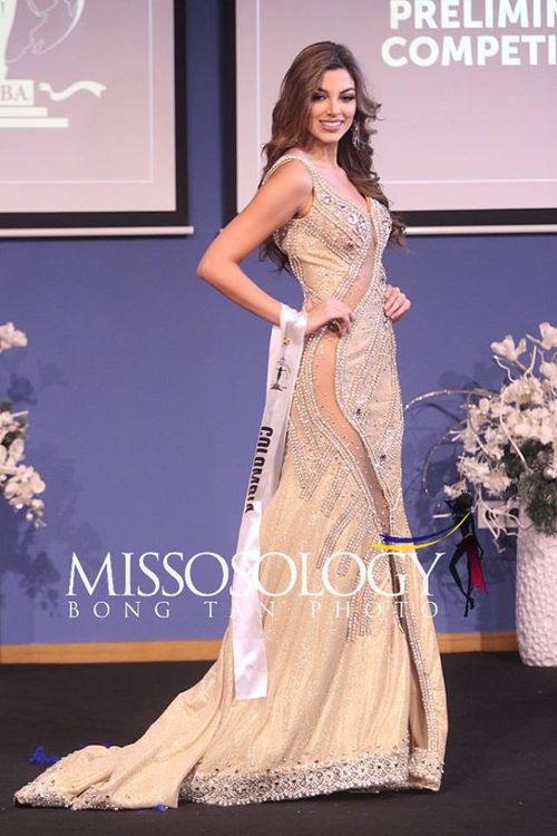 Colombia sở hữu nhan sắc quyến rũ giúp cô có màn thể hiện khá tốt với trang phục trên. Tuy kiểu dáng không mới nhưng cho thấy được sự phá cách trong thiết kế với đường cut-out dài được trang bị một lớp voan mỏng tạo điểm nhấn hài hòa.
