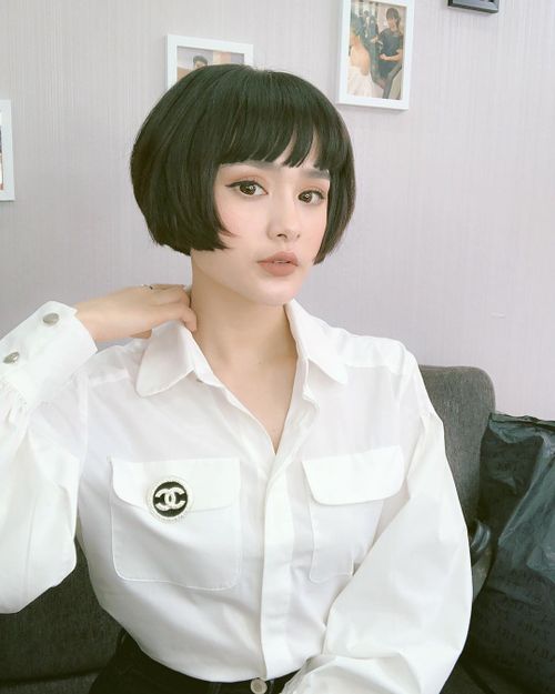 Tóc ngắn ngang má là sự lựa chọn táo bạo của giọng ca “Em ngày xưa khác rồi”. Kiểu tóc này khá kén gương mặt nhưng có thể thấy với kiểu tóc độc đáo, Hiền Hồ xinh đẹp “tựa búp bê”.