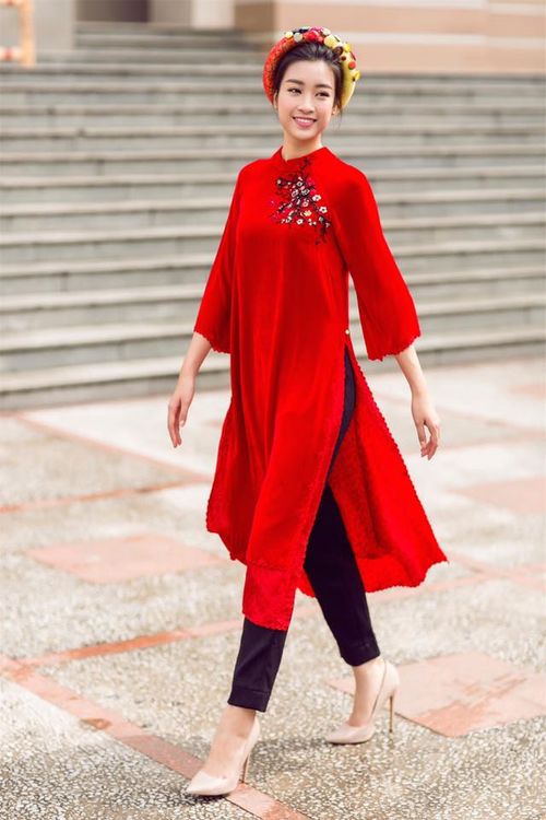 Cuối cùng, những chiếc áo dài truyền thống là item không thể nào thiếu trong những dịp tết đến xuân về.Theo Mỹ Linh, chiếc áo dài mang vẻ đẹp truyền thống, vừa quyến rũ mà lịch sự, duyên dáng mà nhẹ nhàng, tôn vinh vẻ đẹp của người phụ nữ Việt Nam.