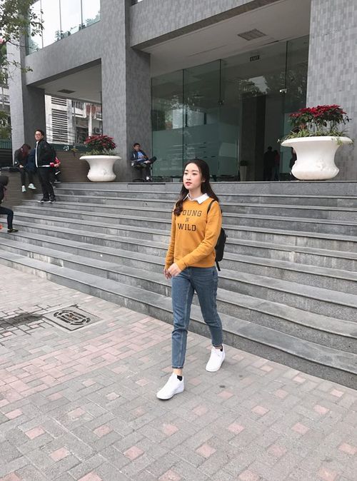 Trở thành mỹ nhân “đắt giá” của showbiz, thường xuyên ăn mặc lộng lẫy, xa xỉ khi đi sự kiện nhưng khi quay trở về với giảng đường Đỗ Mỹ Linh vẫn dung dị, trẻ trung và đậm chất sinh viên như bình thường.
