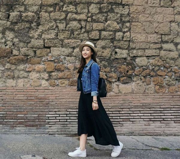 Dịu dàng, e ấp là thế nhưng mỗi khi xuống phố nàng hậu vẫn có chút gì đó cá tính của lứa tuổi “giảng đường”. Chân dài họ Đỗ vẫn trung thành với phong cách thời trang đơn giản quen thuộc, nhưng được cô kết hợp cùng những món phụ kiện đắt giá đến từ những nhà mốt đình đám trên thế giới để thêm phần đẳng cấp hơn.