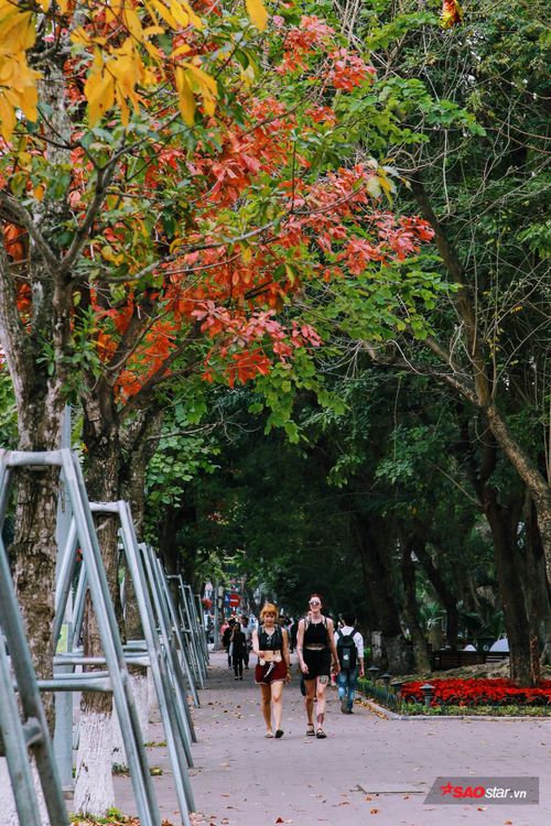 Con đường lá đỏ đẹp như ở Hàn Quốc tại bờ hồ Hoàn Kiếm.