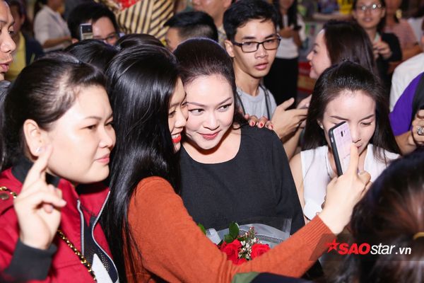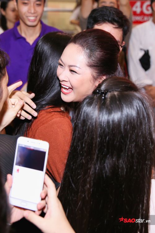 Như Quỳnh tươi cười, hạnh phúc trong vòng vây của fan.