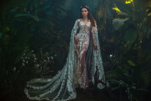 Váy dạ hội đính kết thủ công tạo nên hoa văn bắt sáng trên chất liệu vải lưới trong suốt của Đỗ Long được Võ Hoàng Yến sử dụng trên thảm đỏ Hàn Quốc. Bộ cánh nửa kín nửa hở này có thể “chiêu dụ” nhiều ánh mắt vì độ gợi cảm được phát huy tuyệt đối.