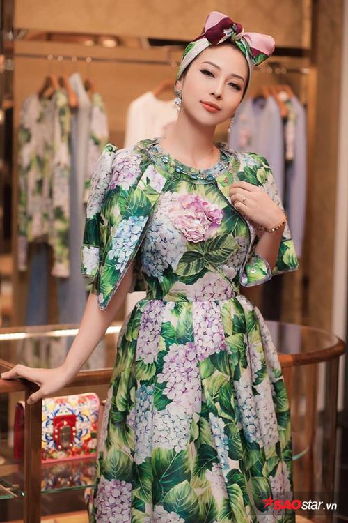 Hoa hậu Jolie Nguyễn cũng gây ấn tượng với phong cách thanh lịch mà không kém phần sang chảnh có giá trị khoảng 300 triệu đồng.