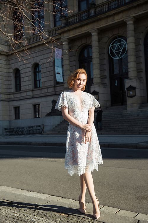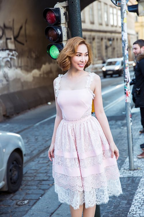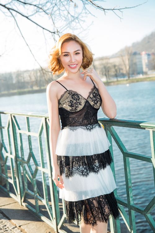 Diện thiết kế có phần quyến rũ, Quỳnh Thư khoe vẻ sexy, gợi cảm khi thả bộ trên những con phố tại Praha (Cộng Hòa Sec).