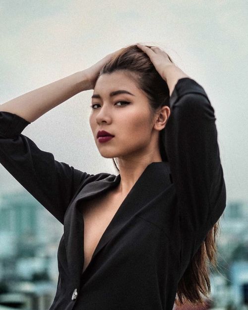 Minh Tú luôn tự nhận mình là một tín đồ thực thụ của sneakers khi cô nàng nói vui rằng BST sneakers chính là cả gia tài của mình. Với làn da rám nắng, siêu mẫu diện một set đồ nóng bỏng với áo bra, quần short, sneakers trùng tone màu đen. Và điểm nhân chính là chiếc áo khoác bằng nhung sang chảnh màu rose gold sáng lóa.